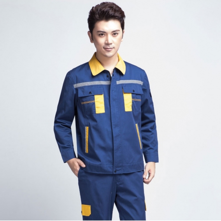 卡其拼藏青涤棉纱卡长袖工衣AC109