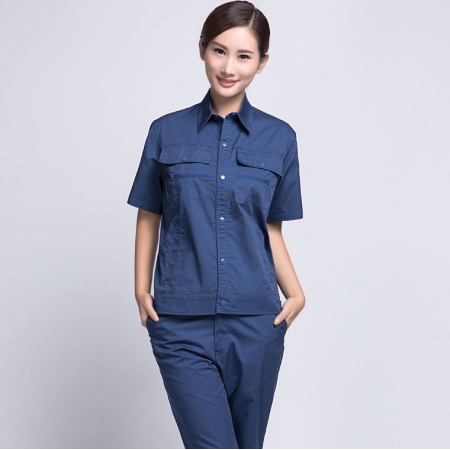 苏州鹰诺服装:藏青色夏季短袖工作服AD10-3