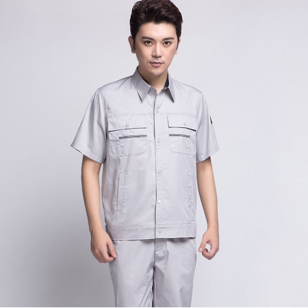 苏州鹰诺服装:清灰拼银灰全棉夏季工作服AD06-2