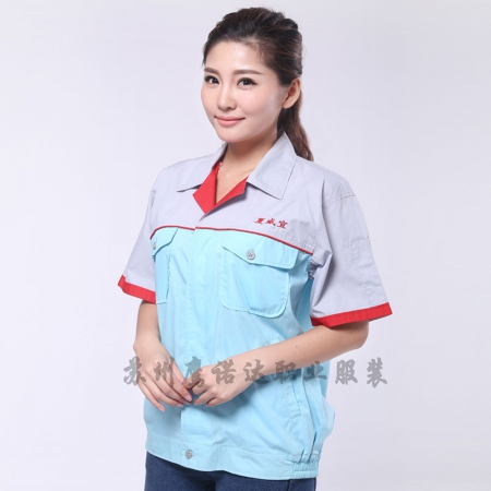 苏州鹰诺服装:翠蓝色夏季工作服AD101