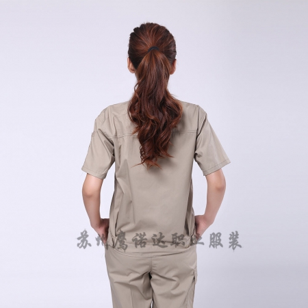 苏州鹰诺服装:绿灰拼桔黄夏季工作服AD106