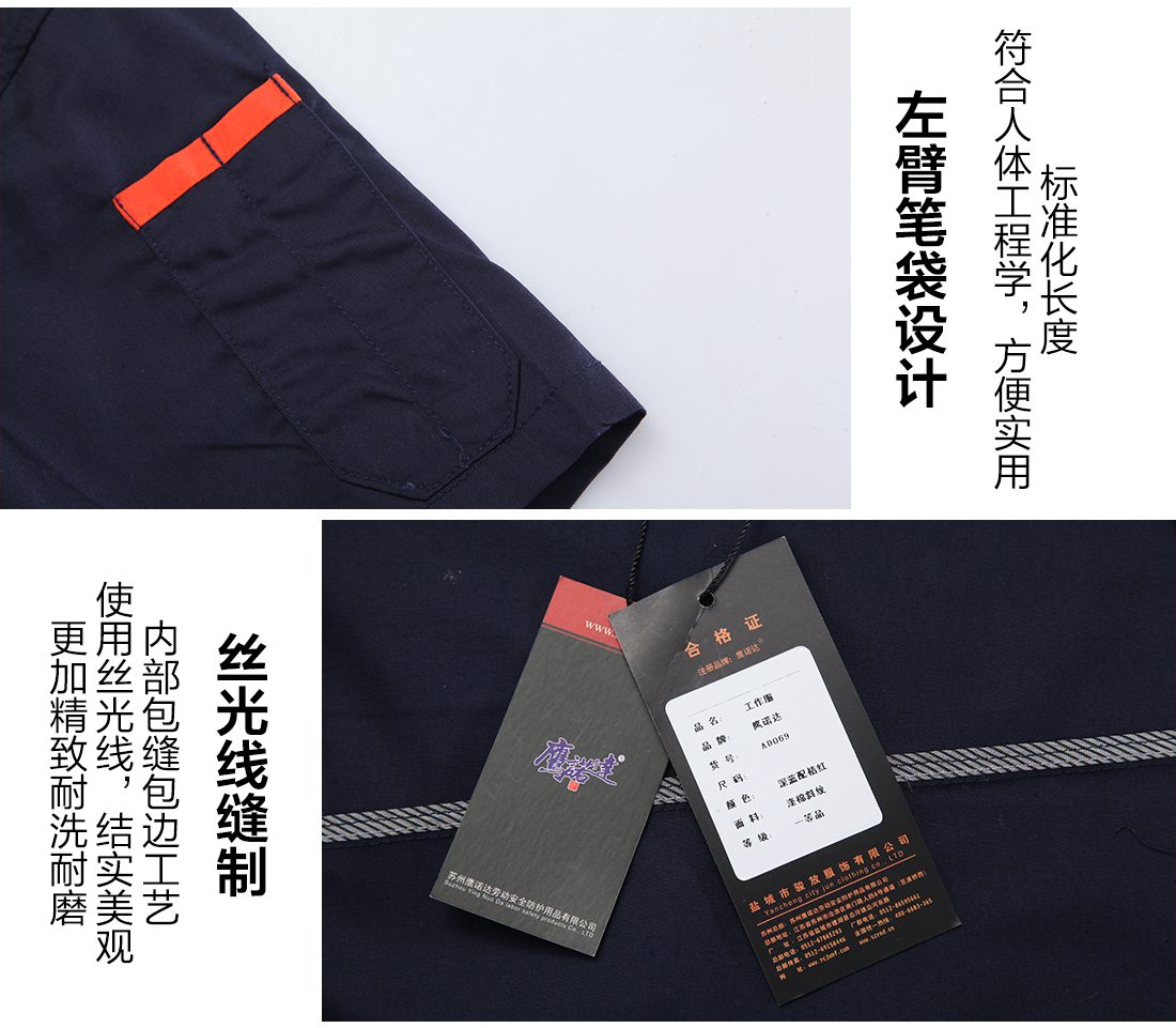 - 游客于 2017-08-07 09:40:55 发表深蓝配桔红夏季工作服套装AD069