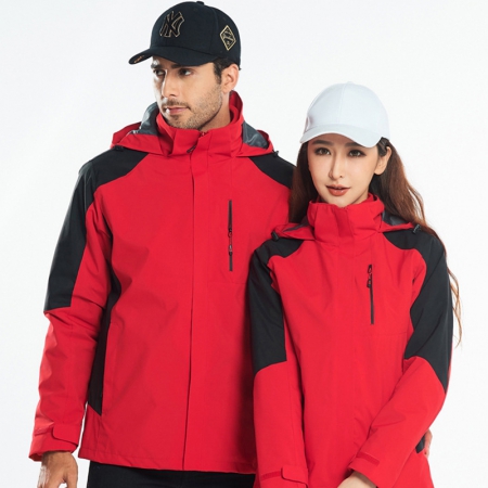 苏州鹰诺服装:红拼黑色冲锋衣CFY1903-15