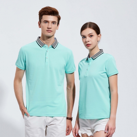 苏州鹰诺服装:条纹领冰离子纤维T恤衫TX0053