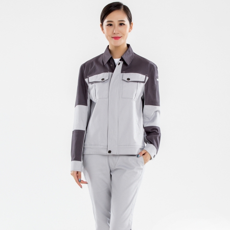 苏州鹰诺服装:米灰拼铁灰工作服AC14-3