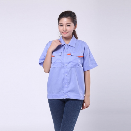苏州鹰诺服装:浅蓝色短袖工作服AD046-DX