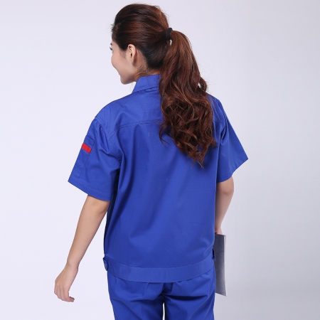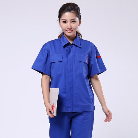 苏州鹰诺服装:翠蓝色短袖工作服AD101-DX