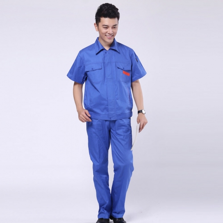 苏州鹰诺服装:藏青拼大红夏季工衣AD103-XJ