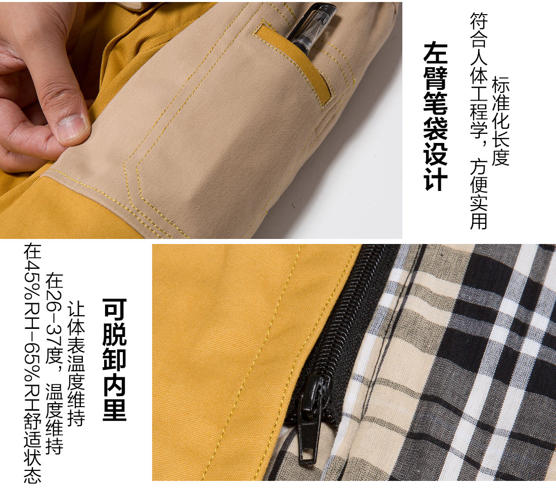 - 游客于 2018-06-10 12:39:51 发表苏州鹰诺服装:冬季服装厂家冬季工作服黄拼灰色MF20-4
