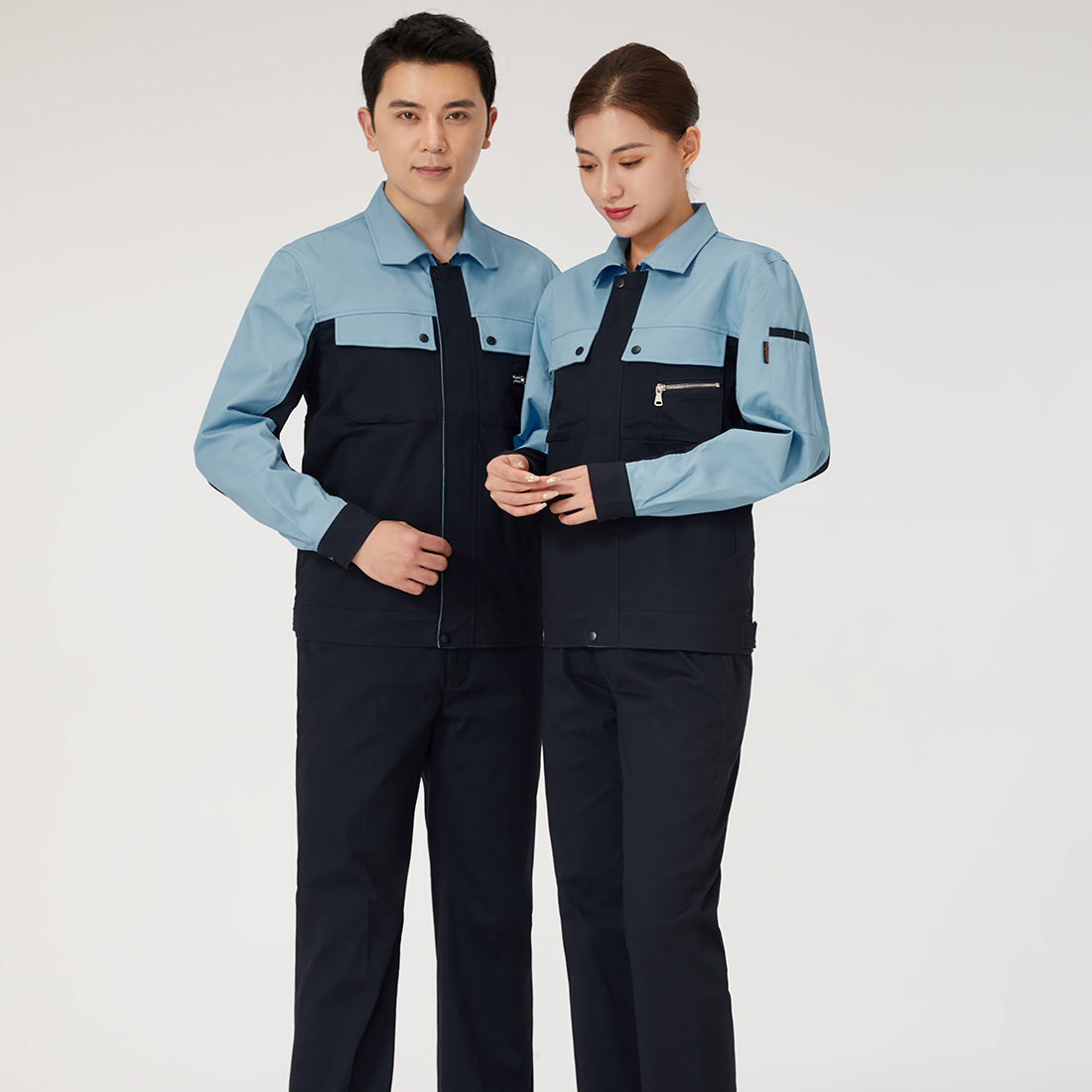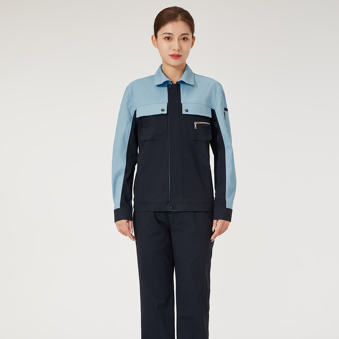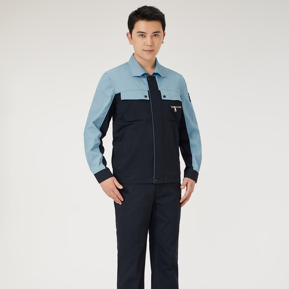 深蓝配浅灰夏季工作服AD079