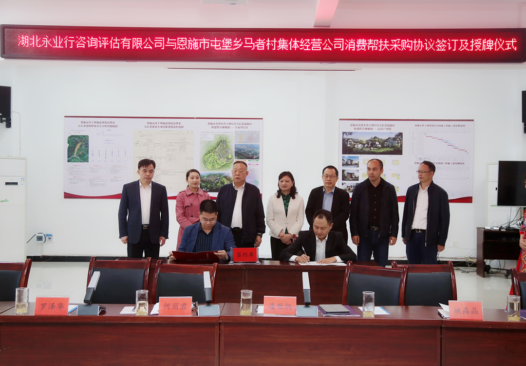 在与会领导的共同见证下,永业行助理总裁兼鄂西区总经理雷小明与马者村集体经营公司负责人黄泽永共同签订消费帮扶协议。