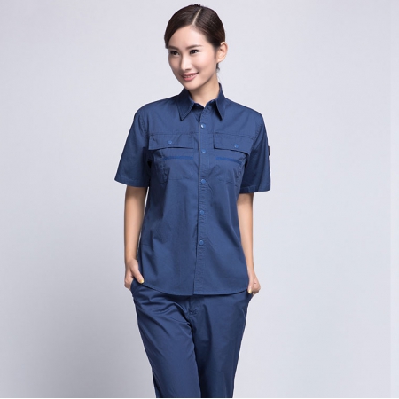 苏州鹰诺服装:艳蓝色短袖工作服AD12-4