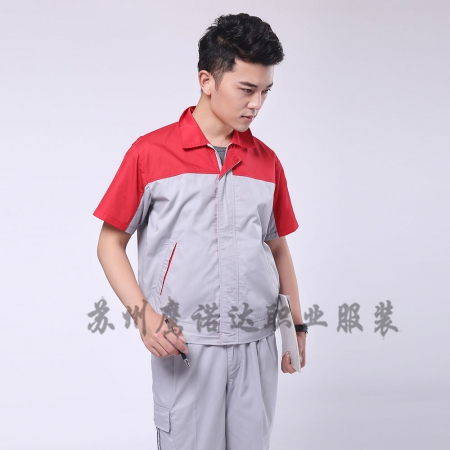 大红配浅灰春秋工作服AC078