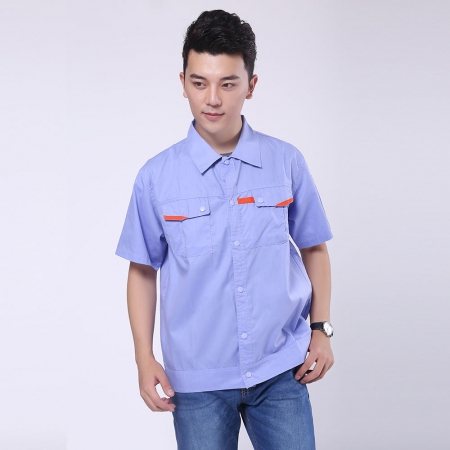 苏州鹰诺服装:浅蓝色短袖工作服AD046-DX