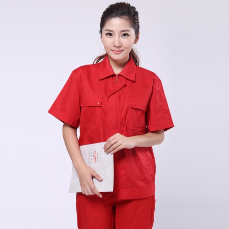 苏州鹰诺服装:大红涤棉细斜纹防静电服AD091-JD