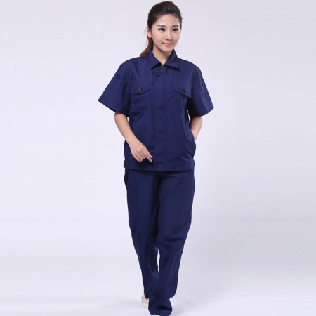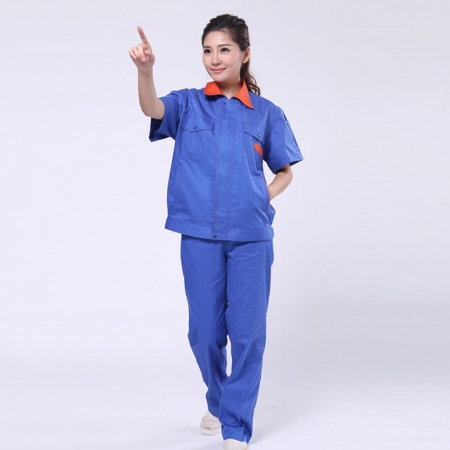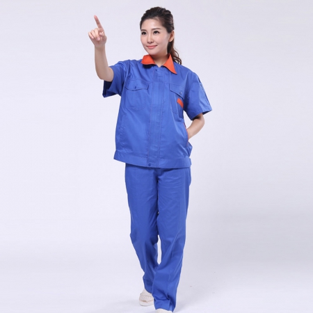 苏州鹰诺服装:藏青拼大红夏季工衣AD103-XJ