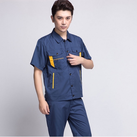 苏州鹰诺服装:灰色拼藏青夏季工作服AD089
