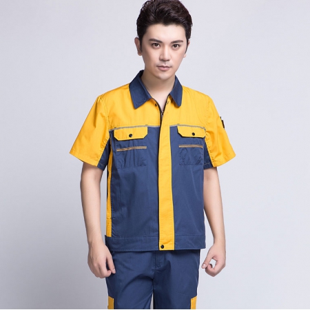 苏州鹰诺服装:黄拼驼色汽修工作服AC20-4