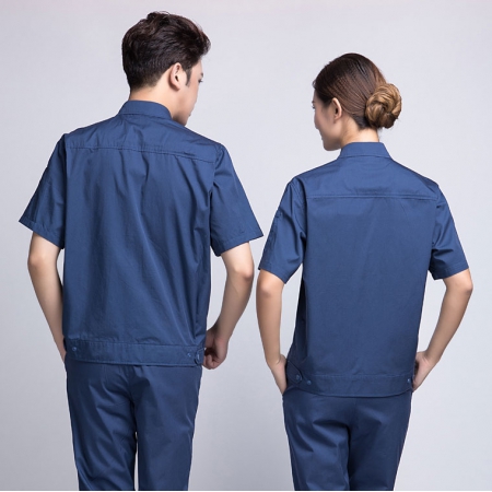 苏州鹰诺服装:深兰色短袖工作服AD04-2