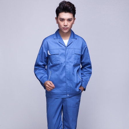 苏州鹰诺服装:湖蓝拼浅灰工作服AC20-2