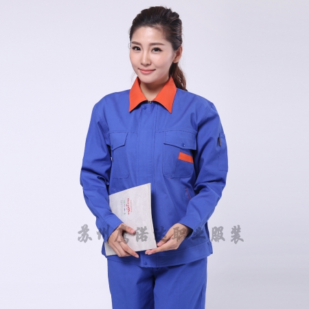 苏州鹰诺服装:湖蓝拼浅灰工作服AC20-2