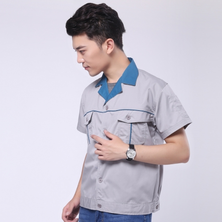 苏州鹰诺服装:浅灰拼中灰全棉秋季工作服AC06-1